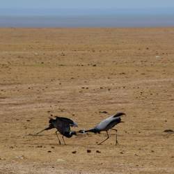 Wenig später auf der linken Seite ein Jungfernkranich Paar bei Hochzeitstanz.
