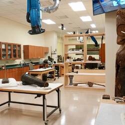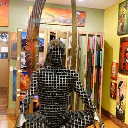 Natürlich kann man auch Instrumente auch ausprobieren und eine Werkstatt zum Restaurieren fehlt auch nicht.