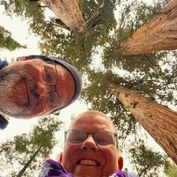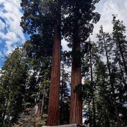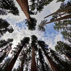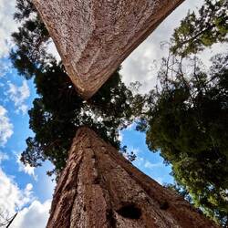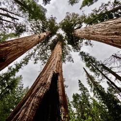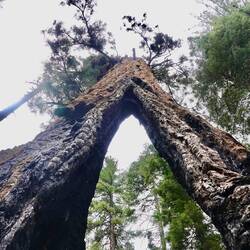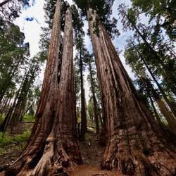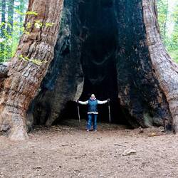 Nach 40 km auf dem HWY 4 erreichen wir den Calaveras Big Tree State Park, den es seit 1931 gibt. Hier wollen wir den Sequoia‘s nochmal ganz nah sein.