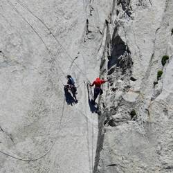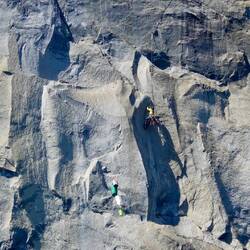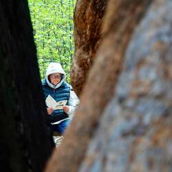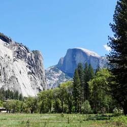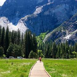 Weiter fahren wir mit dem Shuttle Bus. Er ist umsonst und fährt alle 20 min, super Sache. Am „El Capitan Meadow“ steigen wir aus und sehen ein paar Jungs mit Fernrohren dort stehen. Sie sindOkumaya devam et