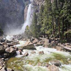 Wir stehen um halb sieben auf und sind um halb acht an der Abzweigung zum Glacier Point. Und die Schranke ist auf. Nach weiteren 24 km kommen wir zum WashburnOkumaya devam et