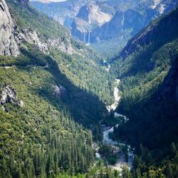 Eigentlich sind es nur 2 km vom Glacier Point zum Ahwahnee Hotel im Yosemite Valley, und etwas über 1000 Höhenmeter.