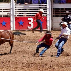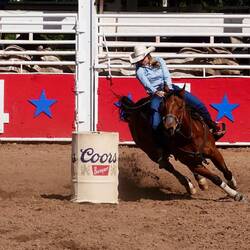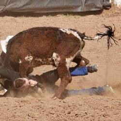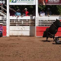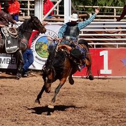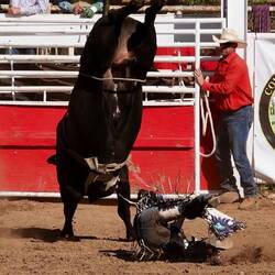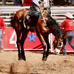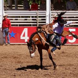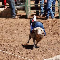 Wenn es hier schon ein Muttertags-Rodeo gibt, dann müssen wir dahin. Und so sitzen wir, nachdem wir 15 min zum Festplatz gelaufen sind, auf der Tribüne, anstatt weiter nach Nordosten zu fahren.Okumaya devam et
