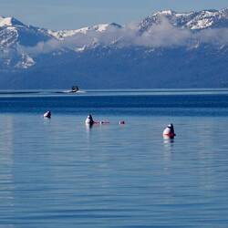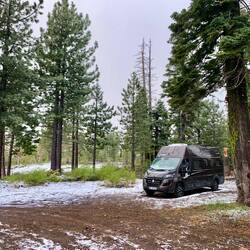 Die Nacht war erträglich mit -3 Grad und heute Morgen scheint die Sonne. Für uns geht es über den Carson Pass mit 2613m und an einigen Bergsee (teilweise mit Eis) vorbei zu Lake Tahoe. Er liegt aufOkumaya devam et