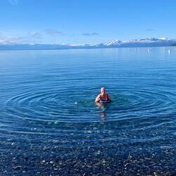 Ann kann dem See nicht widerstehen, und muss als erstes heute morgen ins Wasser. Sehr „Cool“