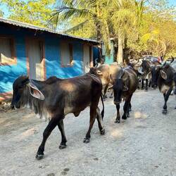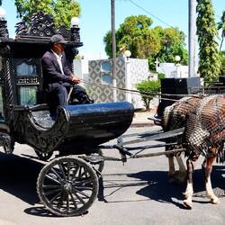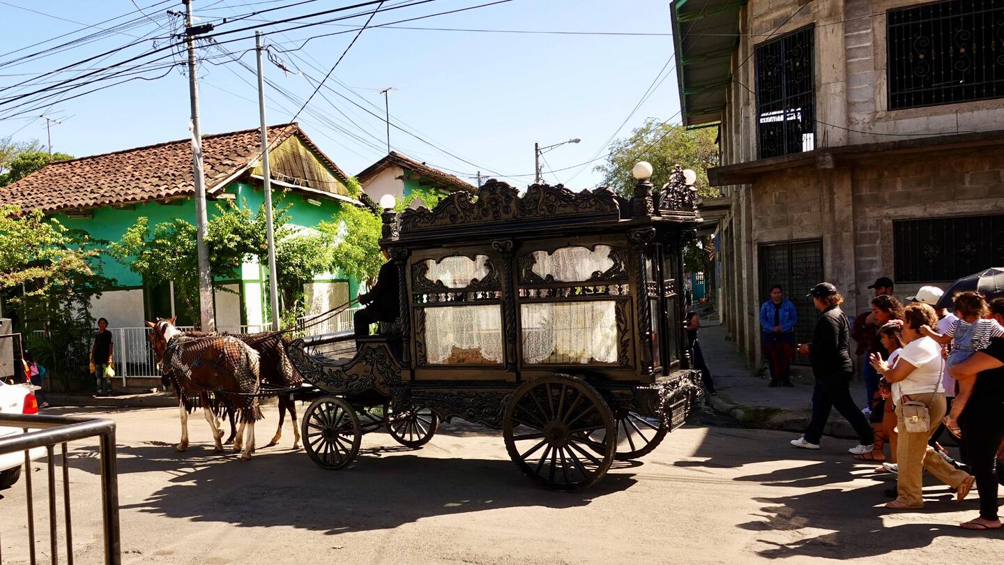 Der Morgen beginnt sehr interessant, vor dem Tor zieht ein Trauerzug vorbei. Vorne ein Auto mit Musik, dann kommt eine alte Kutsche mit dem Sarg und dahinter die Trauernde. Sehr ergreifend.