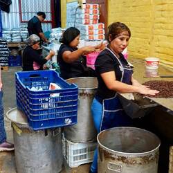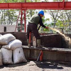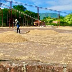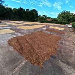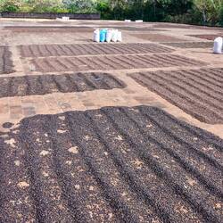 Auf großen Flächen liegen hier die unterschiedlichen Kaffeebohnen zumWeiterlesen