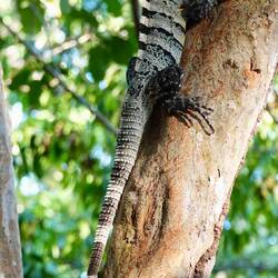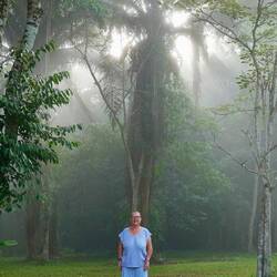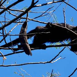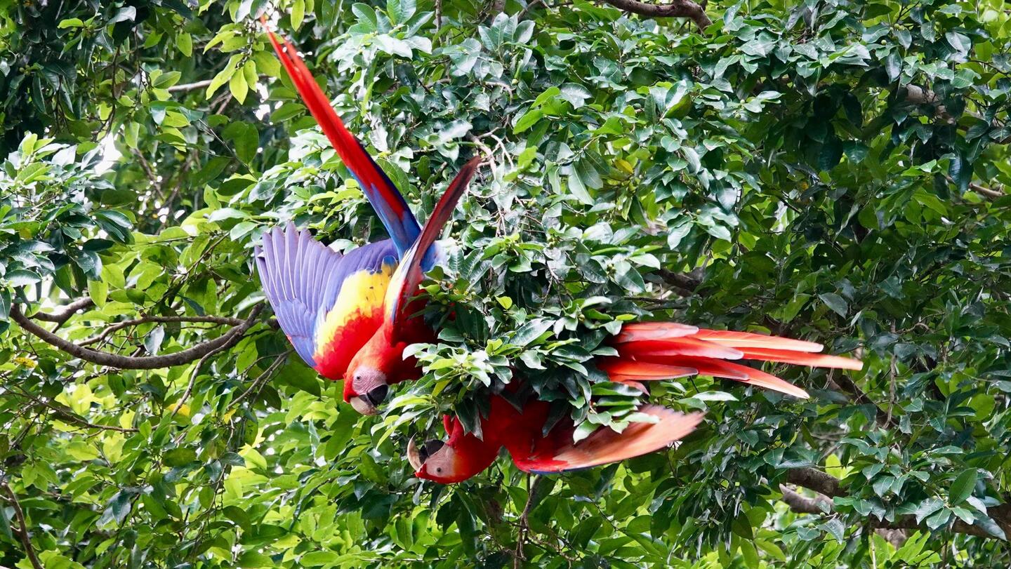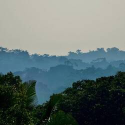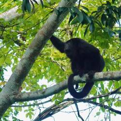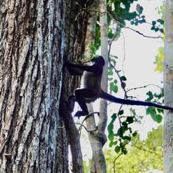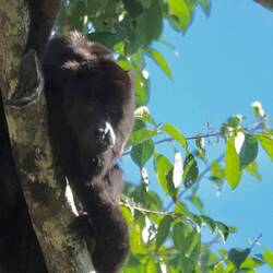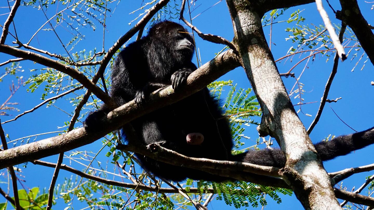 Beim Frühstücken klettern schon die Affen über uns in den Bäumen.