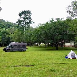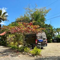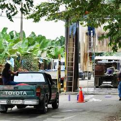 Früh um halb sechs fuhren die ersten Bananen LkWs. Wir fragten einen Wächter, ob man sich die Plantage anschauen könnte? Doch leider ist sie in privaten Besitz.