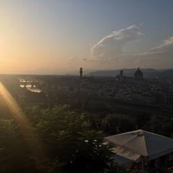 - We arrived at the piazza at 6pm (2.5 hours before sunset) to get some quieter photos of the city, but then we realised how early it was and how hungry we were so we got some drinks and chippies! The day had been pretty hazey so the sunset didn’t set Firenze ablaze as we would’ve hoped but it was still breathtaking....despite being joined by 10,000,000 of our now closest friends.