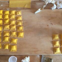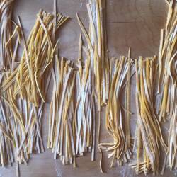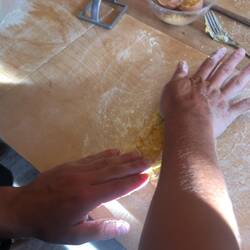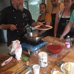 Two male chefs, Stefano and Marco, ran the cooking class. They were like chalk and cheese - Stefano was slightly scary with an intensely dry sense of humour, whereas Marco had an air of simpleness and sweetness (like a good luck pasta fairy sitting on your shoulder). We each had a sterile wooden board with a cup of flour, an egg, a fork and a pasta machine to share with our partner. Over the next 3.5 hours we had the most fun we’ve had in ages purely due to learning a new skill in a fun and foreign environment. The instructions were simple and easy to follow, we saw our dinner be transformed from such basic ingredients to (what we considered) masterpieces, and we met some lovely people in the process! All of the other people were couples, and all, bar one couple, would have been under 35 years of age, and American. While we waited for our pasta to rest, we gorged on the antipasti platters and Prosecco, whilst watching Stefano and Marco prepared one of our sauces. Apparently the cured meat guancialle that is commonly used cannot be found in Australia...we beg to differ! We will make it our mission to track it down, because it’s bloody delicious! And that coming from me....