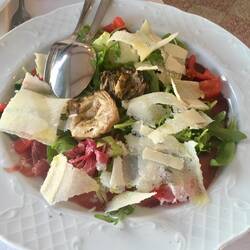 We deliberated on what to order....and ended up spoiling ourselves with bistecca di Fiorentina. Google it and try not to drool all over your keyboard... It was the best piece of red meat we’ve had in a long time, and the pan fried potatoes and Chianti were a perfect accompaniment. Lucky ducks.