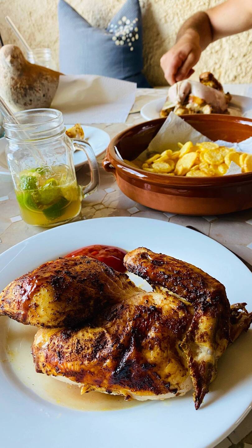 Unser Finca-Leben auf MallorcaHänchen vom Spiess mit Pommes June 26, 2022 in Spain ⋅ ☀️ 29 °C 0 likes Trip