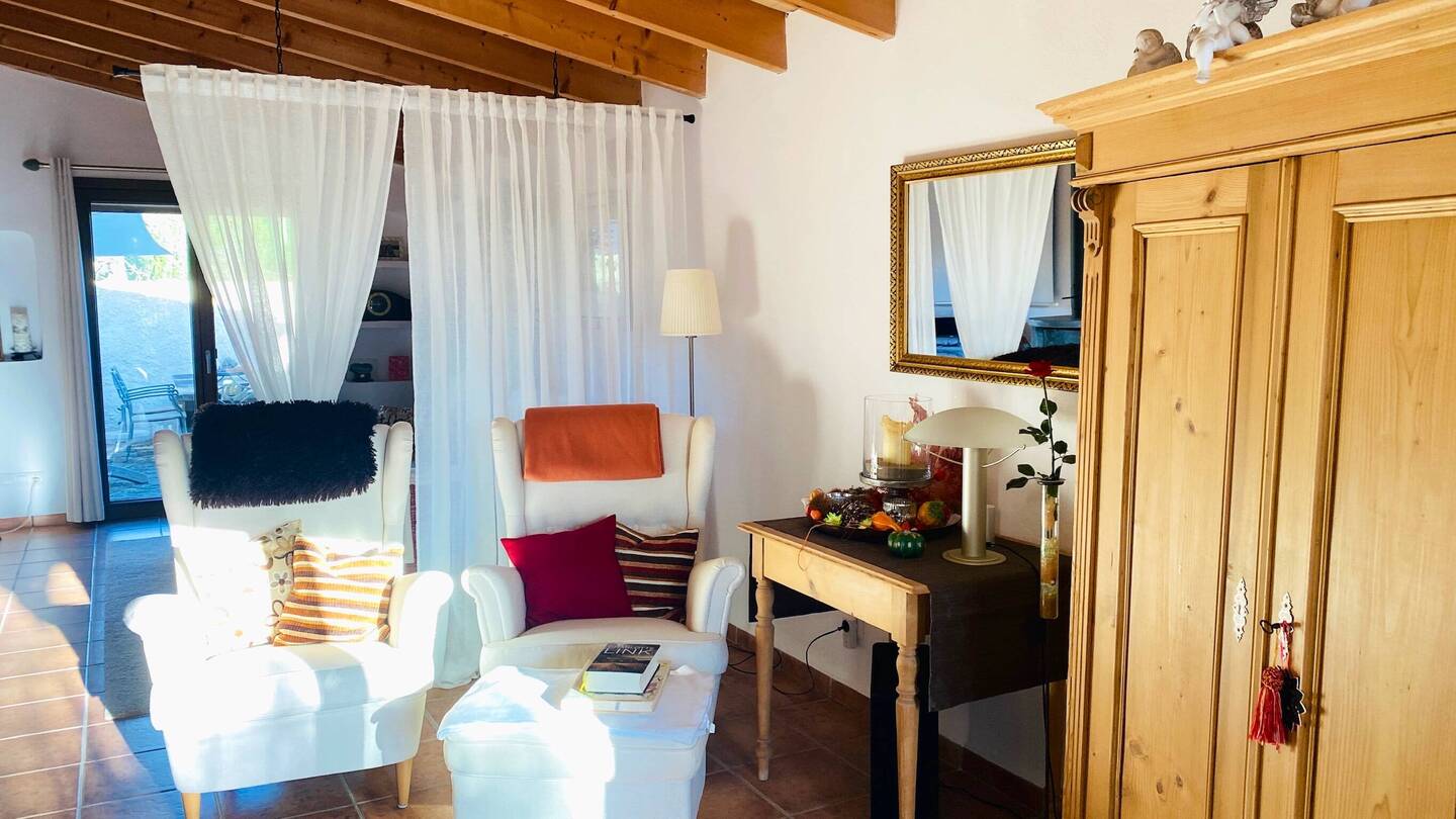 Unser Finca-Leben auf MallorcaSitzecke zu gemütlichen Stunden zu Zweit November 18, 2022 in Spain ⋅ ⛅ 16 °C Neue Raumteiler-Vorhänge von Yvonne genäht. See translation0 likes Trip