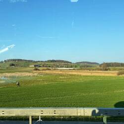 Die Fahrt selbst ist wunderschön: weite Felder, viele Rehe, sogar ein Fuchs zeigt sich kurz 🦊 Wälder und kleine Seen begleiten uns durch die abwechslungsreiche Landschaft.