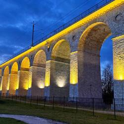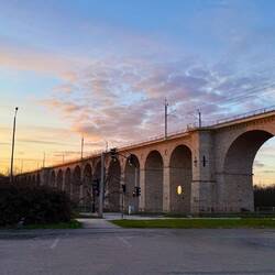 Unser Übernachtungsplatz liegt etwas außerhalb des Zentrums, direkt am beeindruckenden Eisenbahnviadukt aus dem 19. Jahrhundert. Besonders nachts, wenn das Bauwerk stimmungsvoll beleuchtet ist, entfaltet es seinen ganz eigenen Charme.