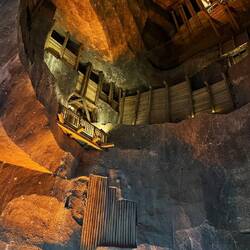Die Salzmine selbst ist beeindruckend alt: Seit dem 13. Jahrhundert wurde hier Salz abgebaut und bis 1998 aktiv gearbeitet. Heute ist sie ein Museum und seit 1978 Teil des UNESCO-Weltkulturerbes. Insgesamt erstreckt sich die Mine über bis zu 300 Kilometer Gänge und neun Ebenen – gesehen haben wir davon allerdings nur einen Bruchteil (2% und 3 Ebenen).