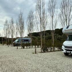 Der Stellplatz liegt fußläufig zur Arezzo und ist ideal, um die Stadt bequem zu erkunden. Auch zu dieser Jahreszeit wird er gut von anderen Campern genutzt.