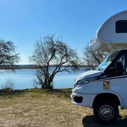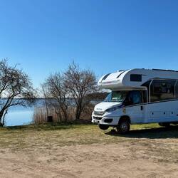 Dieser kostenlose Parkplatz direkt am See ist ein echter Traum. Wir teilen uns den Platz mit ein paar Fischern, ohne uns gegenseitig zu stören.