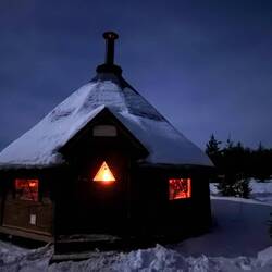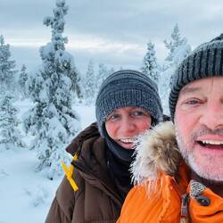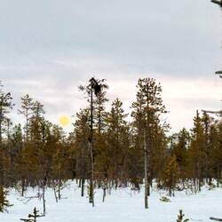 Heute Abend standen ab 2100 Uhr zwei Stunden Schneeschuhwanderung mit der Suche nach der Aurora auf dem Programm. Leider war es zu bedeckt, um dieses grüne Wunder zu sehen.