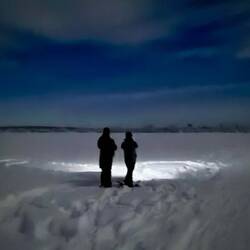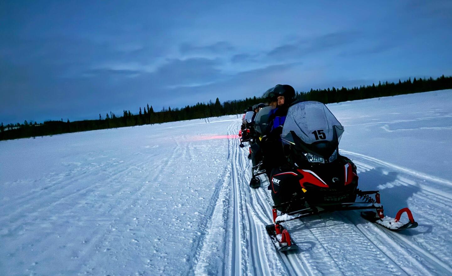 Wir fuhren in einer Gruppe mit unseren Snowmobilen durch die Nacht aufRead more