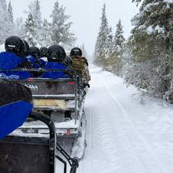Mit einem grossen Schlitten von einem Schneemobil gezogen fahren wir zur Huskyfarm unweit desRead more