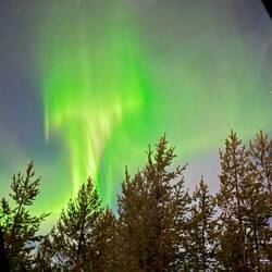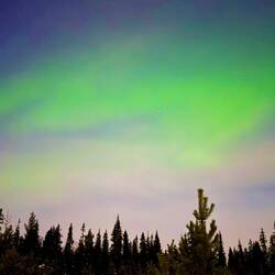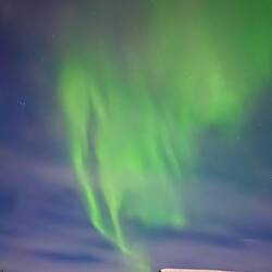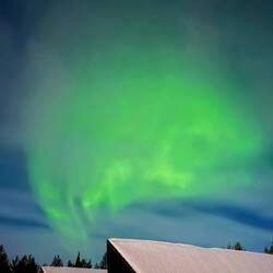 … und wir fanden es. Oder auch Aurora Borealis genannt. Trotz Vollmond tauchten die grünen Farben plötzlich am Himmel auf.