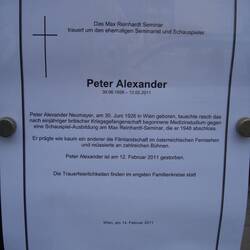 Am Max Reinhardt-Seminar an der Penzingerstrasse 9 in Wien schloss Peter Alexander 1948 die Schauspiel-Schule mit Auszeichnung ab.