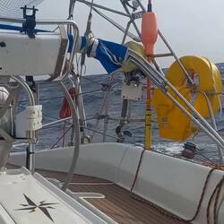 La vigilance est de mise et tous mes sens sont en éveil. Chaque bruit, choc ou vibration nouvelle fait l'objet d'une recherche attentive. Nous réalisons aussi chaque matin le point d'état des batteries : le déficit d'énergie est comblé chaque jour par 2h de moteur, c'est beaucoup je trouve mais l'utilisation depuis plus de 24h du régulateur d'allures ralenti considérablement la décharge journalière et c'est un point positif. Malheureusement le soleil brille par son absence depuis 2 jours et on ne peut pas encore se passer du moteur. Attendons qu'il revienne pour conclure.