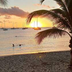 Lundi 5 janvier : grosse nav aujourd'hui. Je lève l'ancre à 3h et quittons la petite anse d'Arlet pour la Dominique. La schkoumoune qui nous collait depuis plusieurs semaines nous a enfin quitté : nous pêchons une dorade coryphène et un thazard pour le diner. Nous atterrissons dans la baie de Portsmouth pour reposer l'équipage, il est 15h. Rien à voir avec notre Portsmouth british d'outre manche, bien que l'île ait connu la domination coloniale du royaume uni jusqu'aux années 70. Nous repartirons demain, l'objectif étant d'atteindre la Guadeloupe et les Saintes mardi.