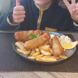 Ce soir nous dégustons pour l'occasion le traditionnel fish and chips qu'il aime tant.