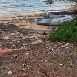 Ah, la tuile... je remets le tout à l'endroit et securise l'annexe contre la poupe. Je comprends que je vais devoir faire de la mécanique aujourd'hui (au mieux car c'est surtout la partie électrique du moteur qui m'inquiète).