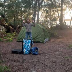 Ceux ci datent de la fin du 19ie siècle (américains, anglais, français et espagnols seraient les potentiels agressés/agresseurs...). Nous explorons des souterrains creusés dans la falaise à la lampe torche, au grand bonheur de Titouan. Nous rentrons au bateau et préparons tente, sacs de couchage, provisions : nous allons camper sur HEN island, petit îlot désert mais plein de végétation à quelques centaines de mètres du Zanzibar. Nous sommes partis en reconnaissance tout à l'heure et une nuit à la Robinson nous tente vraiment.