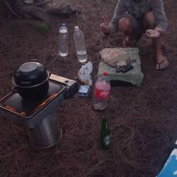 Dimanche 12 avril : Nous nous réveillons après une très tranquille nuit sous la tente (bien qu'un peu frais au petit matin). Notre expérience Robinson Crusoe est réussie. Nous avions tout prévu : réchaud à gaz, pâtes, œufs frais, boîte de sardines et pain frais sorti du four pour accompagner une petite boîte de pâte de campagne. Un régal à la belle étoile 👍. Nous plions la tente et rejoignons Zanzibar pour un bon petit déjeuner, il est 9h.