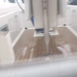 - la fixation inférieure du régulateur d'allure reprend du jeu. Je pensais que j'avais solutionné le problème avec ma grosse équerre inox et la contreplaque. C'est insuffisant, les efforts liés aux coups de butoir de la houle y sont énormes. Il faudra une solution mega costaud. Avant d'arracher un morceau de la jupe arrière, nous ralentissons le bateau et retirons le régulateur qui même hors utilisation continue de torturer la fixation. Nous allumons le pilote hydraulique en remplacement.