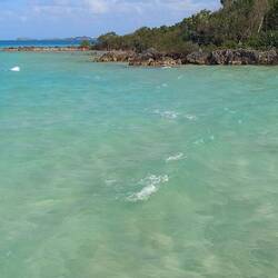 Mardi 24 mars : Nous profitons du magnifique mouillage de Diamond Cay, débarquons sur l'île de JOST VAN DYKE et marchons le long de la lagune jusqu'à Bubbly Pool, piscine naturelle que viennent remplir régulièrement les vagues puissantes venant du large. Nous plongeons encore et encore... Nous n'avons pas pu en observer sous l'eau mais il y a des requins, nous en apercevons de temps en temps à la surface. Ceux-ci sont inoffensifs.