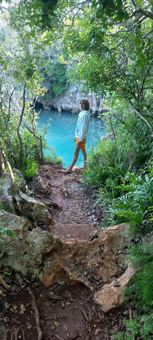 Après midi ; nous prenons le bus jusqu'à la réserve naturelle de Walsingham et le parc Blue Hole. Nous y trouvons des grottes souterraines et des étangs de mangrove aux eau bleues et limpides dans une végétation luxuriante où serpentent des chemins de randonnée très entretenus. Il ne fait pas super chaud (vent frais) ce qui freine nos envies de baignades...Read more