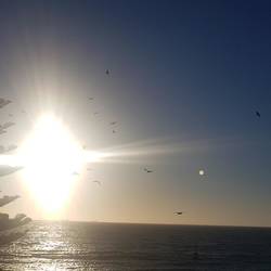 Abends durfte ich mit den beiden einen wunderschönen Sonnenuntergang am Meer bei fish and chips erleben.