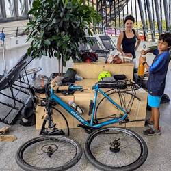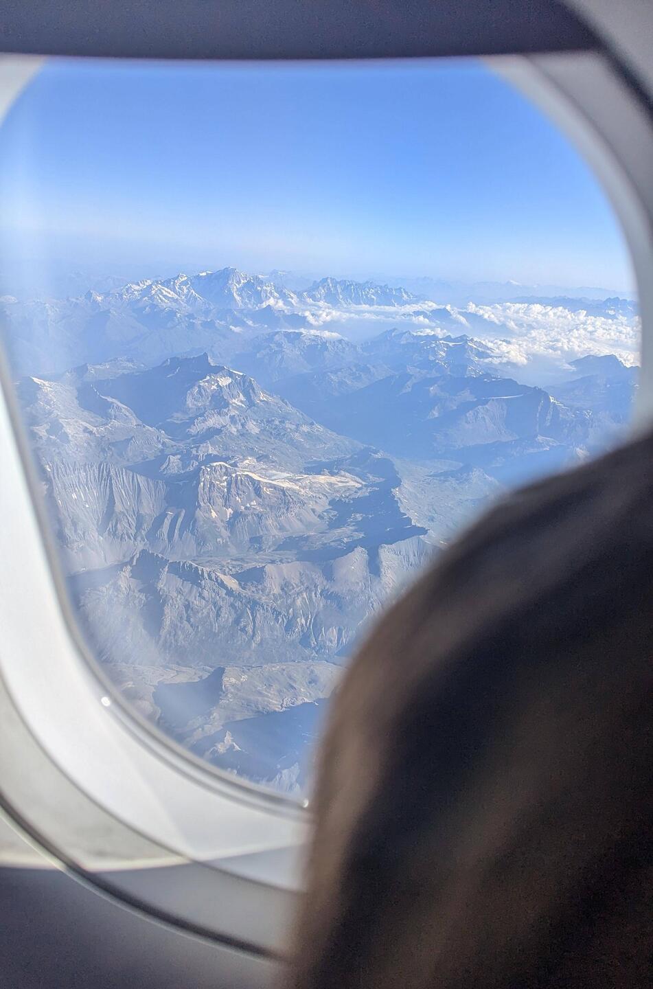 Our flight into Lyon gives us a grand view of the mountains. The two boxes with the bicycles rolled out on to the belt, looking intact. But the bicycle bag that I had checked in did not arrive, and itBaca lagi