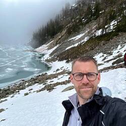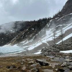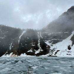 Hier ist es noch richtig frisch, der See ist noch fast ganz zugefroren.