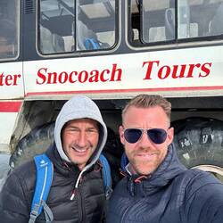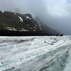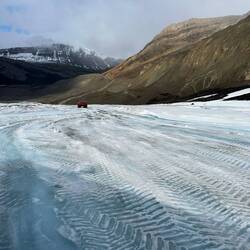 Nun geht es noch mit einem Gletscher Gefährt auf den Athabasca Gletscher.