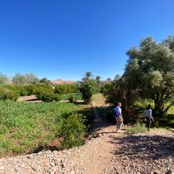 Hier werden dicke Bohnen geerntet. Wir wander durch Mandel - und Aprikosenbäume