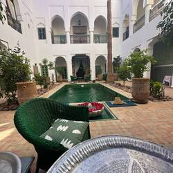 Das Riad ist wirklich ein Traum, auch wenn unsere Stühle gerade okkupiert wurden….