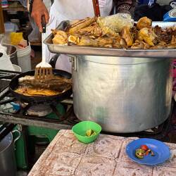 Wir sind die einzigen Touristen- es richt total lecker - halten uns aber besser zurück.