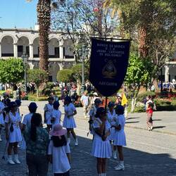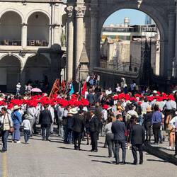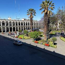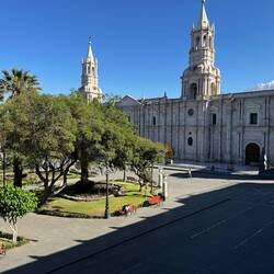 Morgens frühstücken wir noch einmal schön in unserem Hotel mit Blick auf den Plaza de Armas Arequipa und die Kathedrale bevor es gleich zum Zug geht.