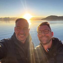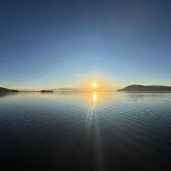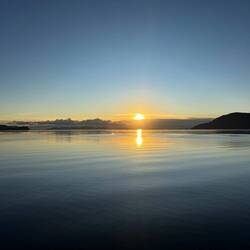 Wir stehen um kurz vor fünf auf, damit wir den schönen Sonnenaufgang sehen können.