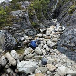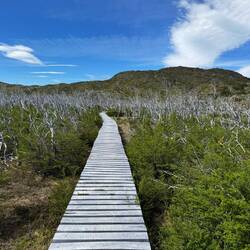 Zuerst müssten wir mit der Fähre über einen See und dann kraxeln wir 22 km.