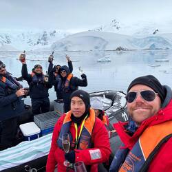 Kleine Aufwärmpause an Board und dann geht es noch einmal mit dem Zodiak los.