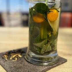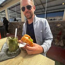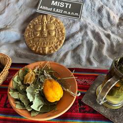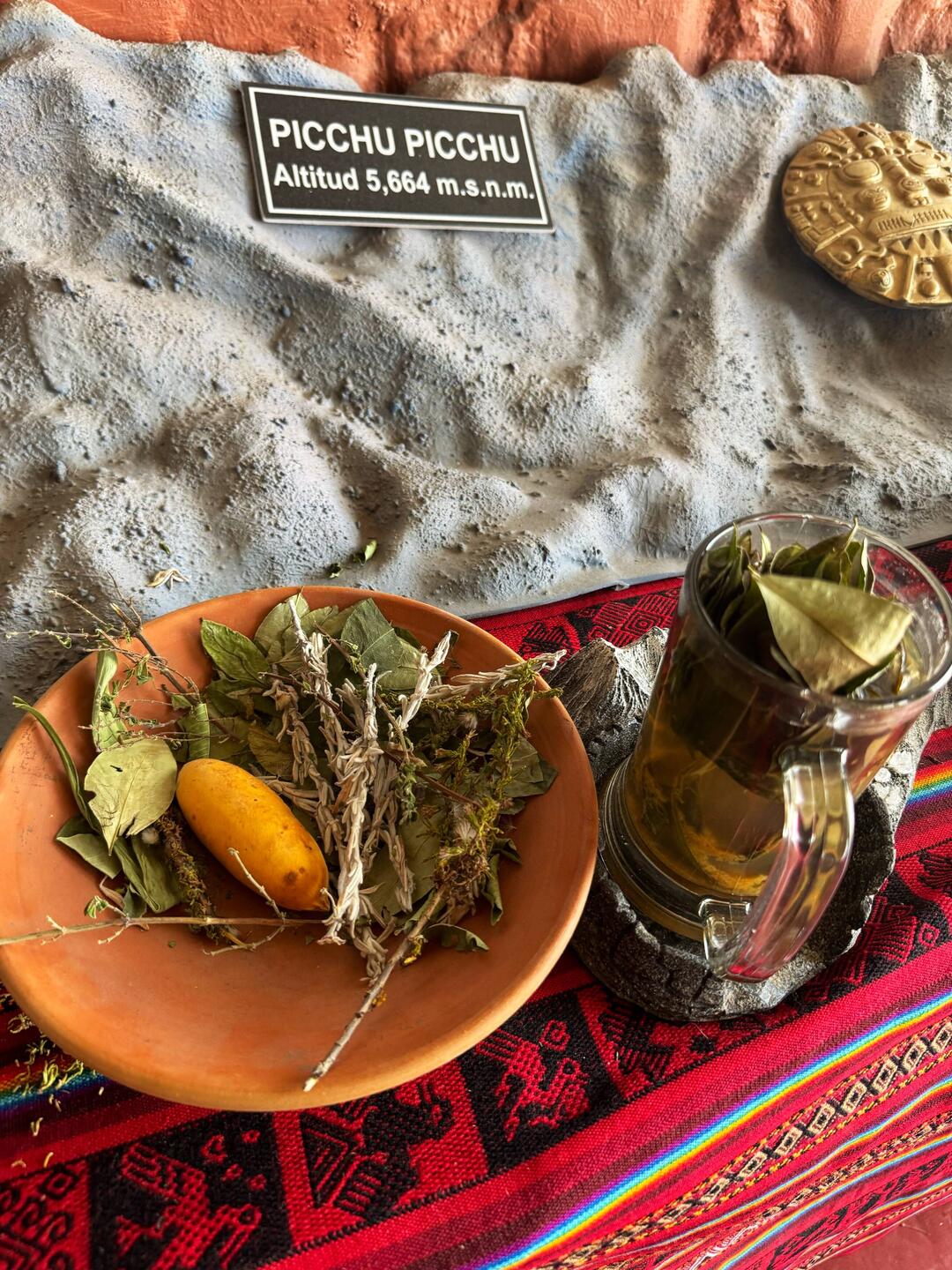 Wir trinken typischen einheimischen Picchu Picchu Tee, Misti Tee und essen ein Sandwich.