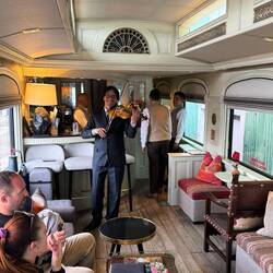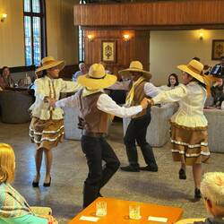 Wir werden mit Tanz, Live Musik Häppchen und Getränken empfangen.